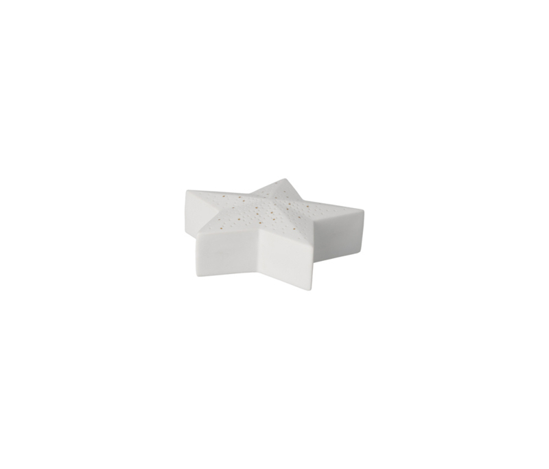 Deze prachtige porseleinen ster van het merk Räder is een LED-licht. Het geeft prachtig licht, heeft extra gouden stipjes tussen de lichtjes en kan liggend of staan worden neergezet. De batterijen zijn inbegrepen (2 x LR44).